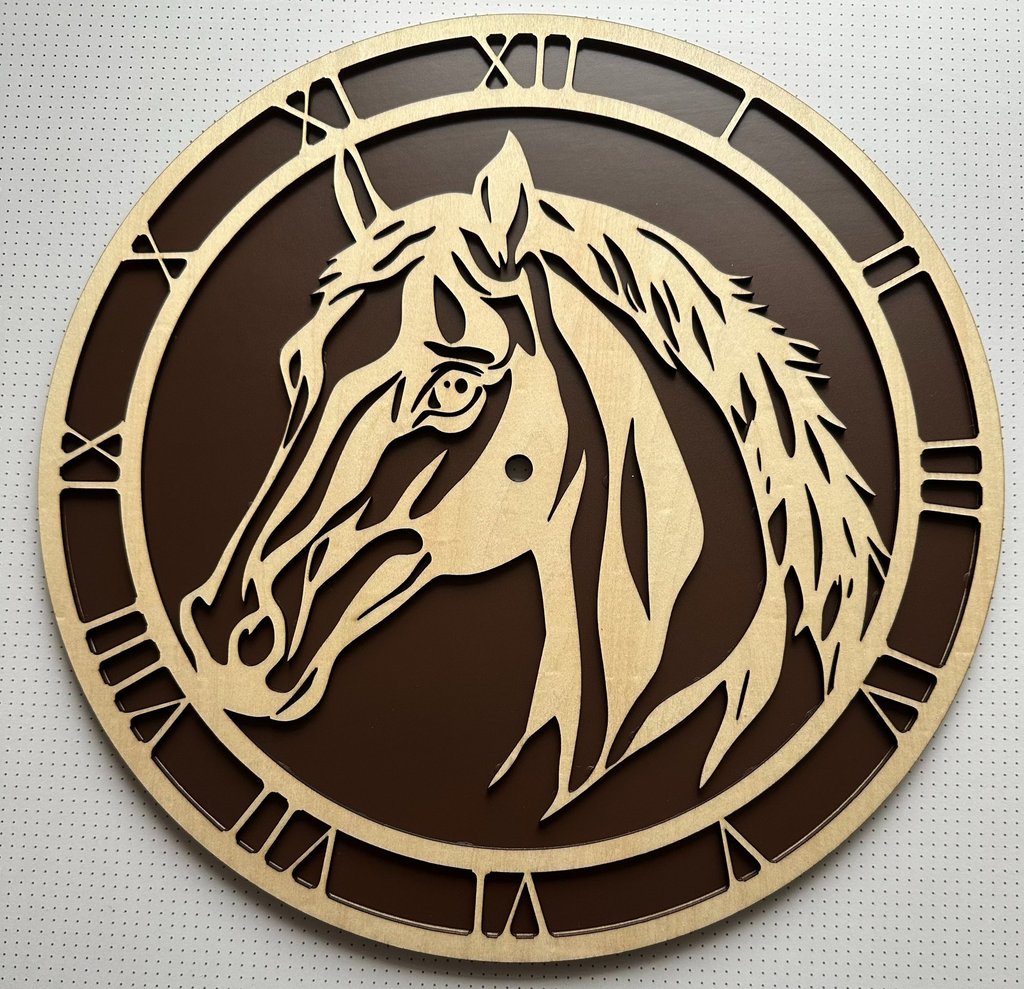 New clock design today for the horse lovers out there. What colour of clock hands will go well with it ?, Red, Gold, White or Black ?. Facebook link.