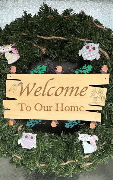 With everything that's happened this week, I forgot I did this Welcome to our home sign. Came out good and added some colour to it. Jane added it to a door wreath for our front door.